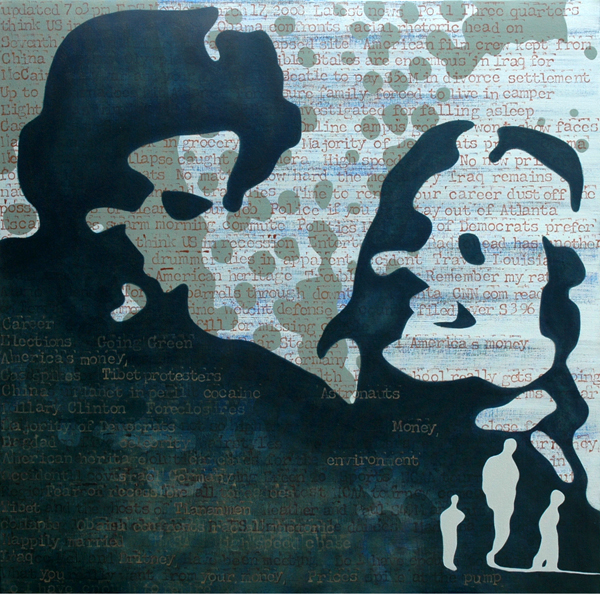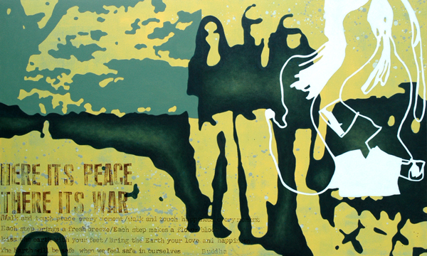 Paintings 2008 January 11, 2009November 11, 2011 | micheleguieu Ingrid Betancourt / mixed media on canvas, 36″x48″ Le Verbe Etre / mixed media on canvas, 3x[20″x20″] Power (vs Force) / acrylic on canvas, 24″x36″ Life at the Border / acrylic on canvas, 36″x48″ Jean and Julia / mixed media on canvas, 24″x36″ Landscape: Writing / acrylic on canvas, 36″x60″ Here it’s Peace, There it’s War / mixed media on canvas, 36″x60″ Territories Series: Asylum Land / mixed media on wood panel, 12″x12″ Give me Truth #1 / mixed media on wood panel, 8″x8″ Give me Truth #2 / mixed media on wood panel, 8″x8″ There / acrylic on canvas, 30″x30″ Here / acrylic on canvas, 30″x30″ Territories Series: Land of Exile / mixed media on wood panel, 12″x12″ March 17, 2008 / mixed media on canvas, 36″x36″ Obama 2008 #1 / acrylic on wood panel, 16″x16″ Obama 2008 #2 / acrylic on wood panel, 12″x12″ Territories Series: Occupied Territories / mixed media on wood panel, 12″x12″ Peace 5 / acrylic on canvas, 12 “x12” Territories Series: Anza Borrego / acrylic on wood panel, 12″x12″ Territories Series: Desert / acrylic on canvas, 12″x12″ Territories Series: Morning / acrylic on canvas 12″x12″ Share this: Click to share on Facebook (Opens in new window) Facebook Click to share on X (Opens in new window) X Like Loading... Related