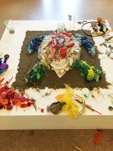Sea Turtle made of plastic Debris found in the San Francisco region. Installation at the MOAH Cedar, Lancaster, CA.