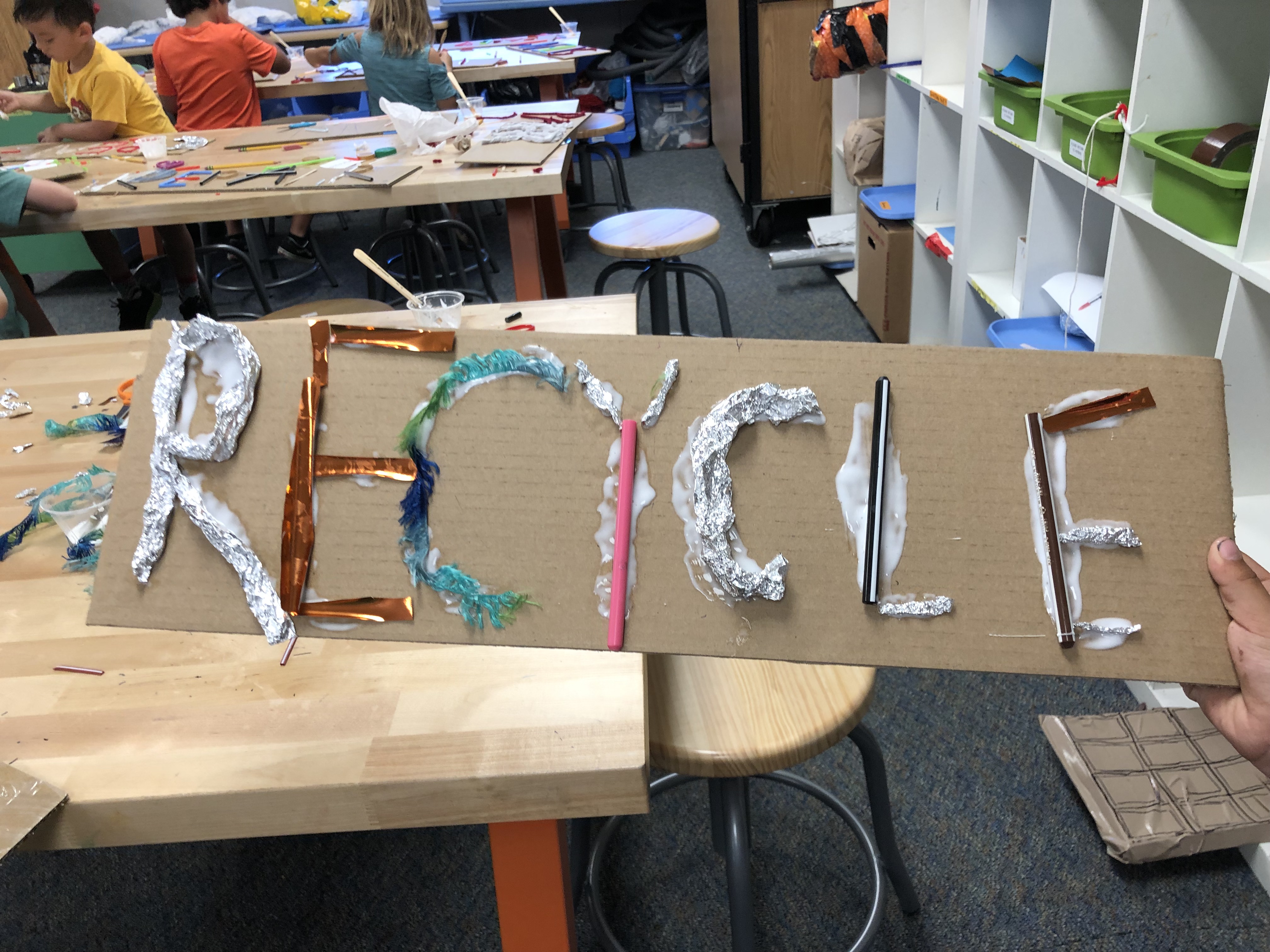 Signs with Recycled Materials at Village Makerspace